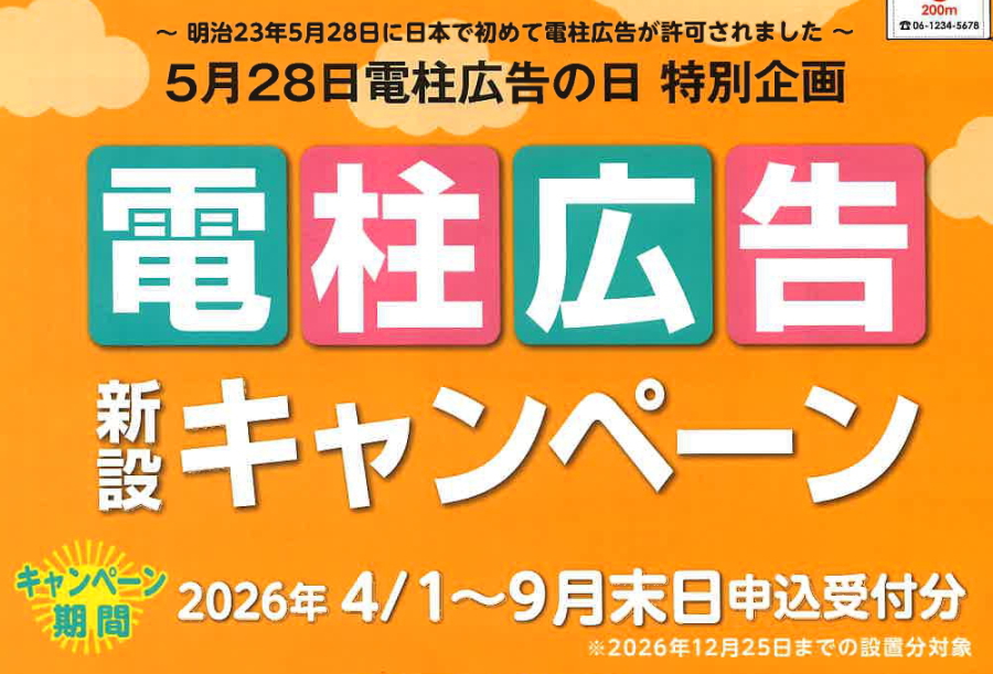 | 大阪・神戸市・尼崎市・西宮市での電柱広告のお問い合わせは、06-6631-0155まで |